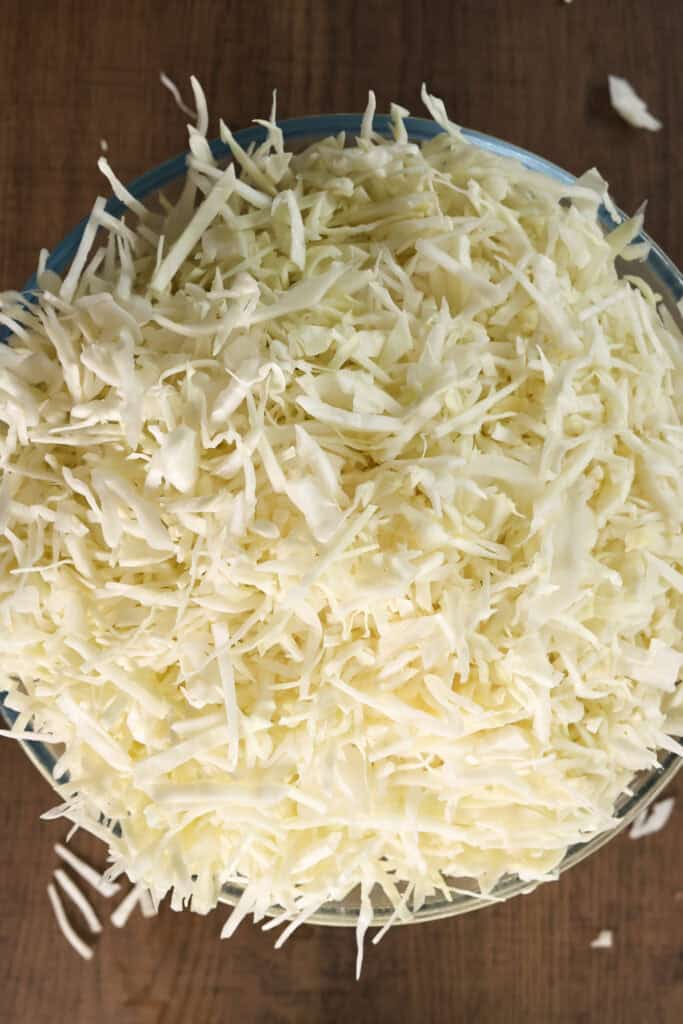 - 2 large green cabbage (or less for a smaller portion) finely sliced or shredded