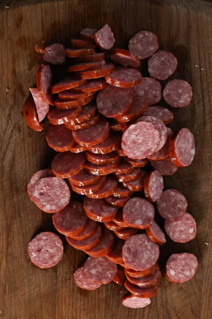 - 1 lb sausage (thinly sliced) any kind you prefer